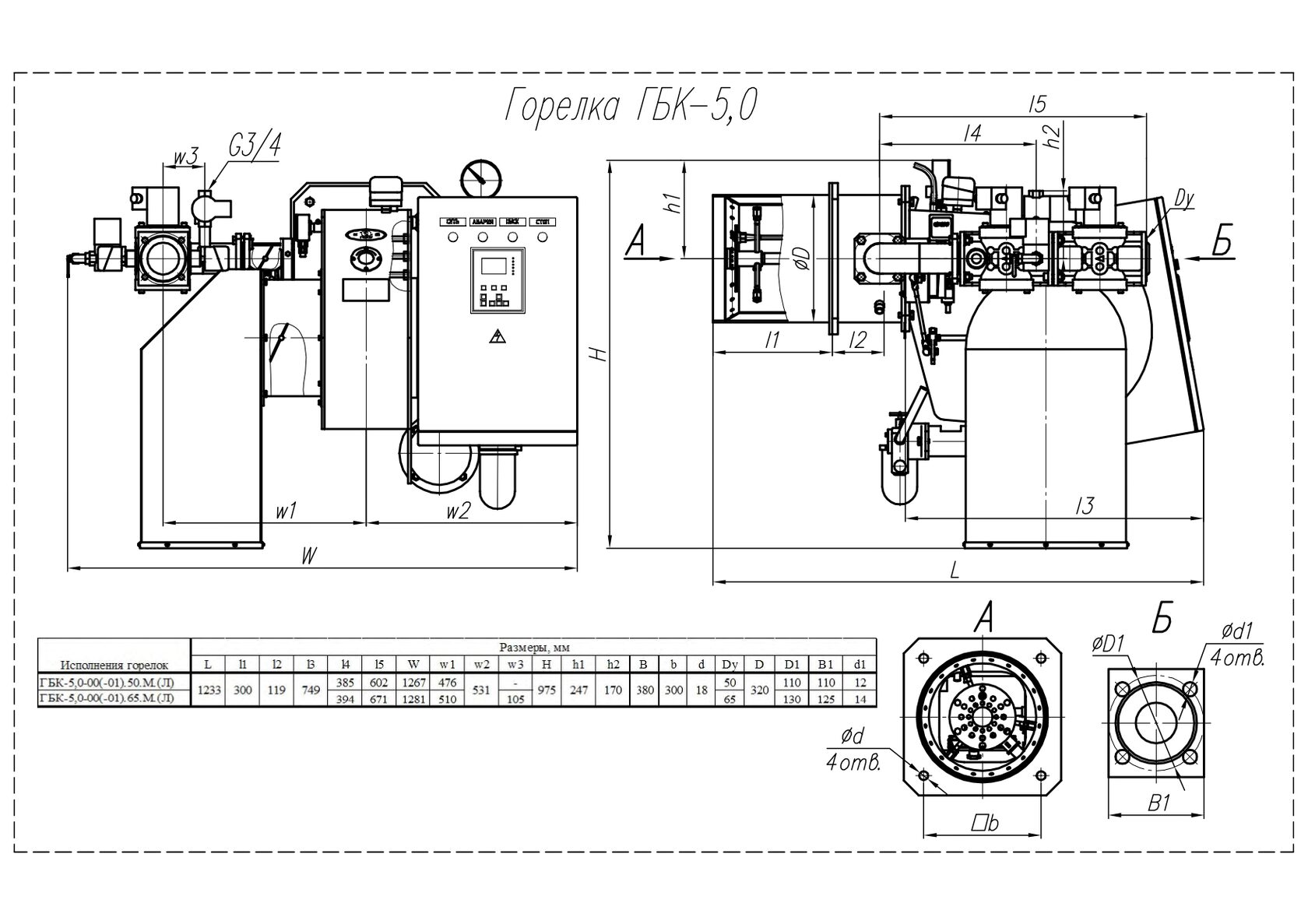 Габаритные и присоединительные размеры ГБК-5,0