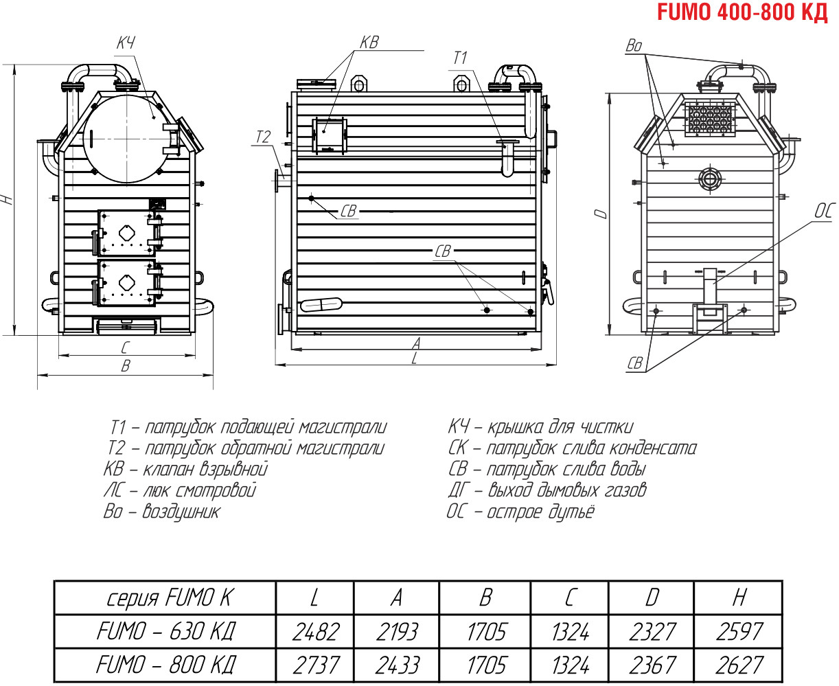 Водотрубно-дымогарный котел FUMO КД от 0,4 до 0,8 МВт (КВр-КД)