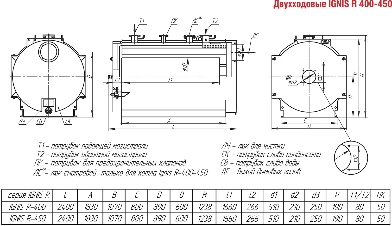 Двухходовой жаротрубный котел от 0,4 до 0,45 МВт (КВа-Г)