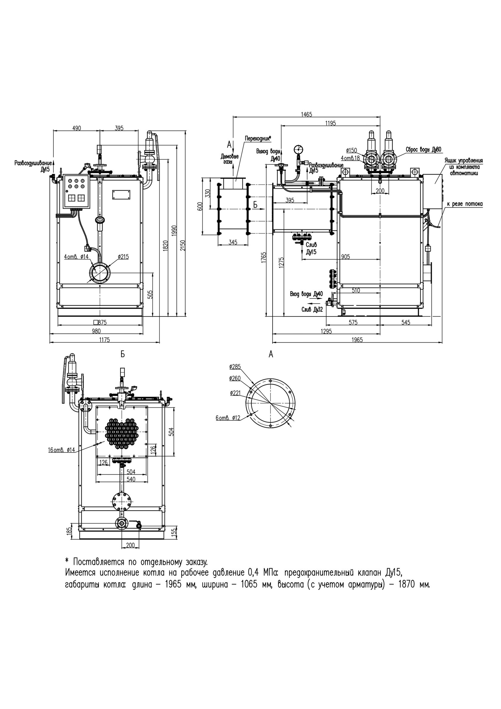 Габаритные и присоединительные размеры котла КВ-0,25