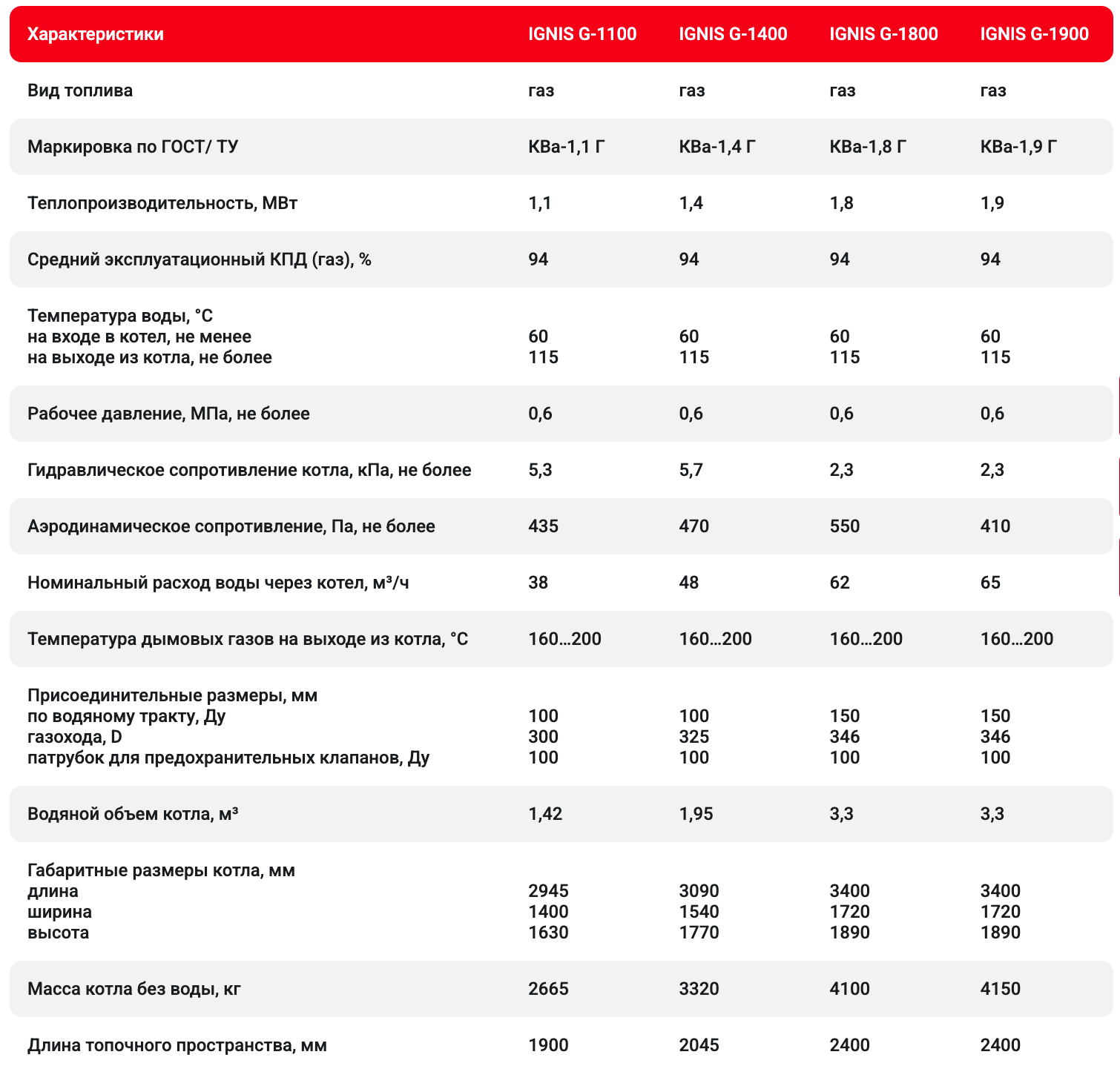 Вид топлива: природный газ ГОСТ 5542, дизельное топливо ГОСТ 305.