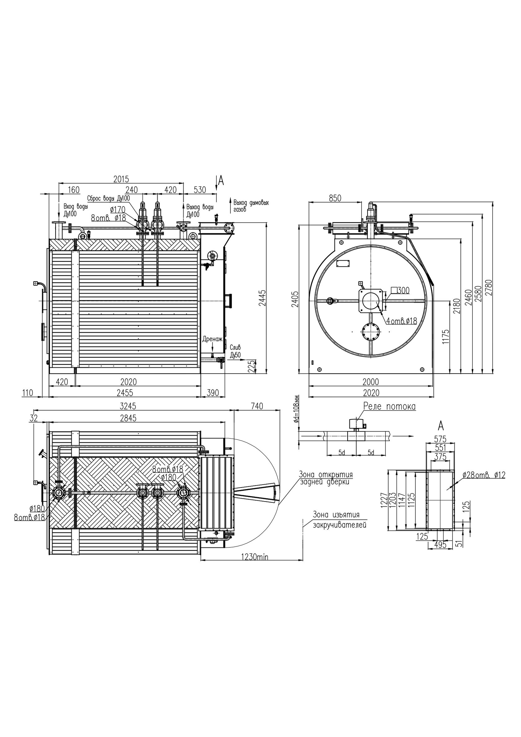 Габаритные и присоединительные размеры котла КВ-3,0Г