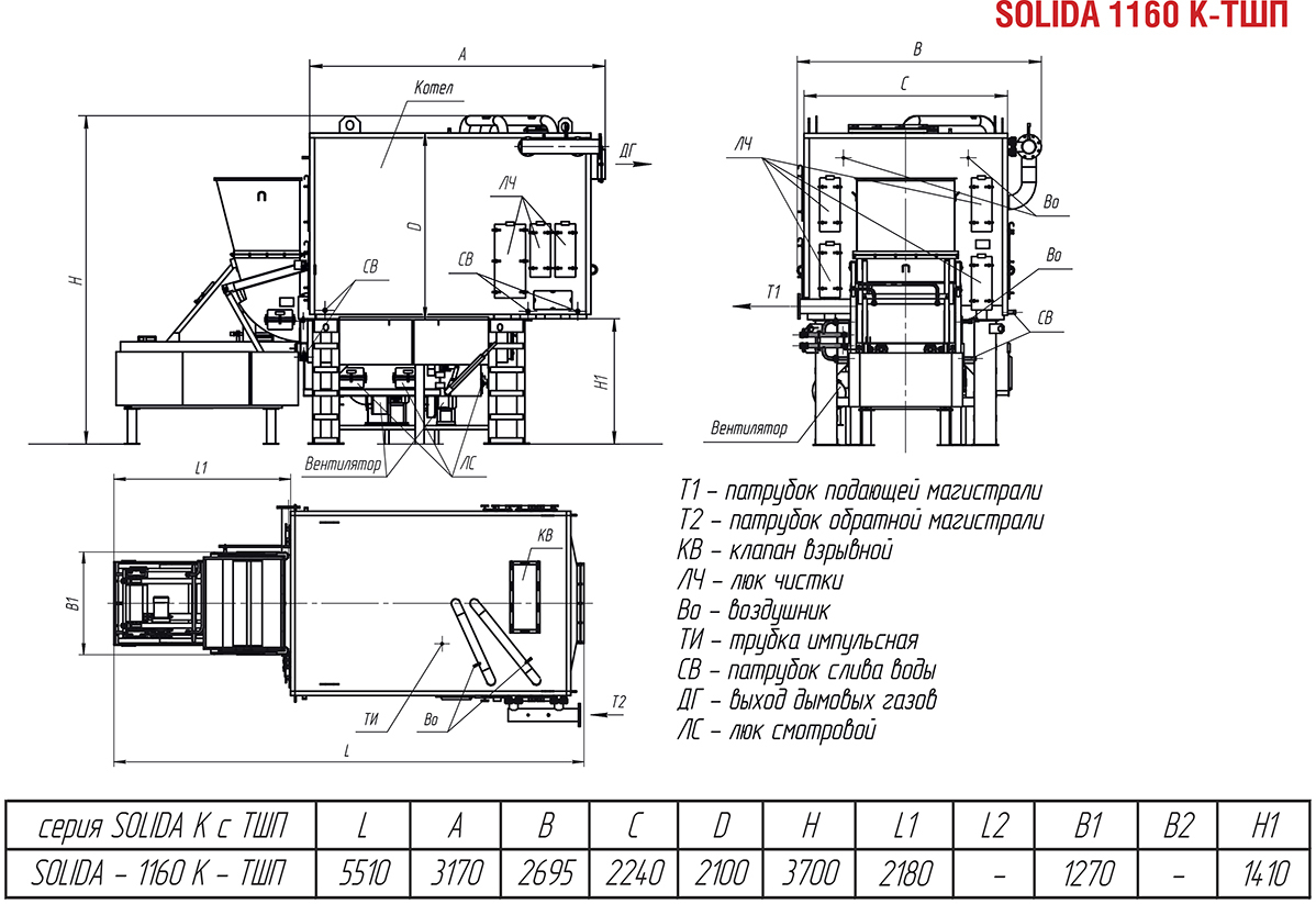 Водотрубный котел SOLIDA К-ТШП - 1,16 МВт (КВм-К)