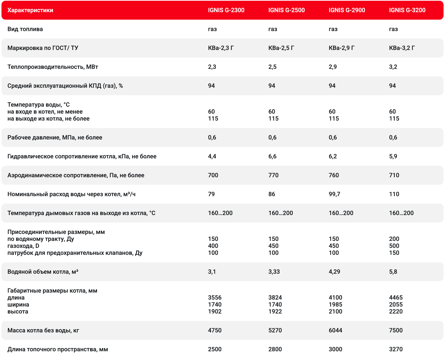 Вид топлива: природный газ ГОСТ 5542, дизельное топливо ГОСТ 305.