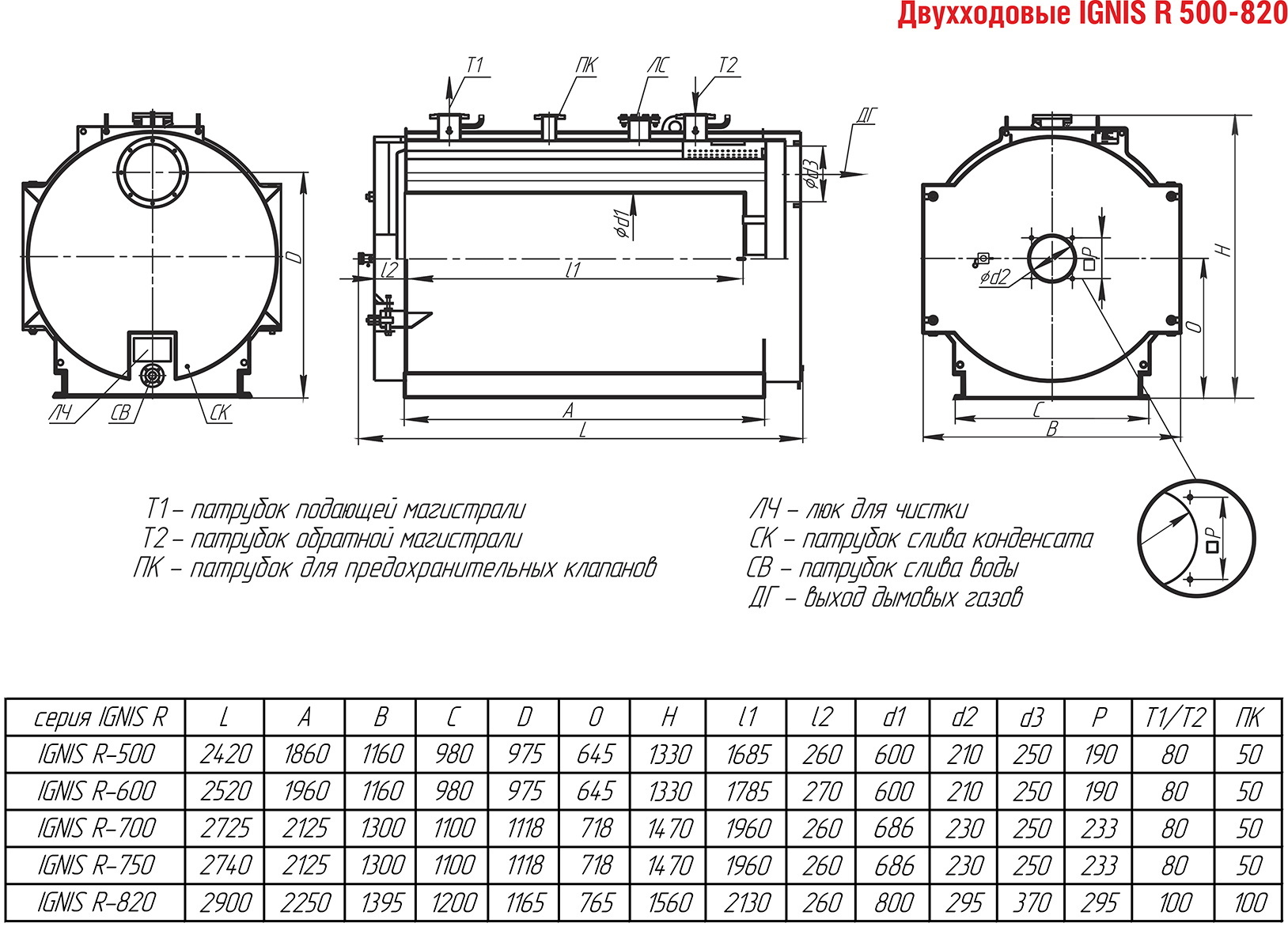 Двухходовой жаротрубный котел от 0,5 до 0,82 МВт (КВа-Г)