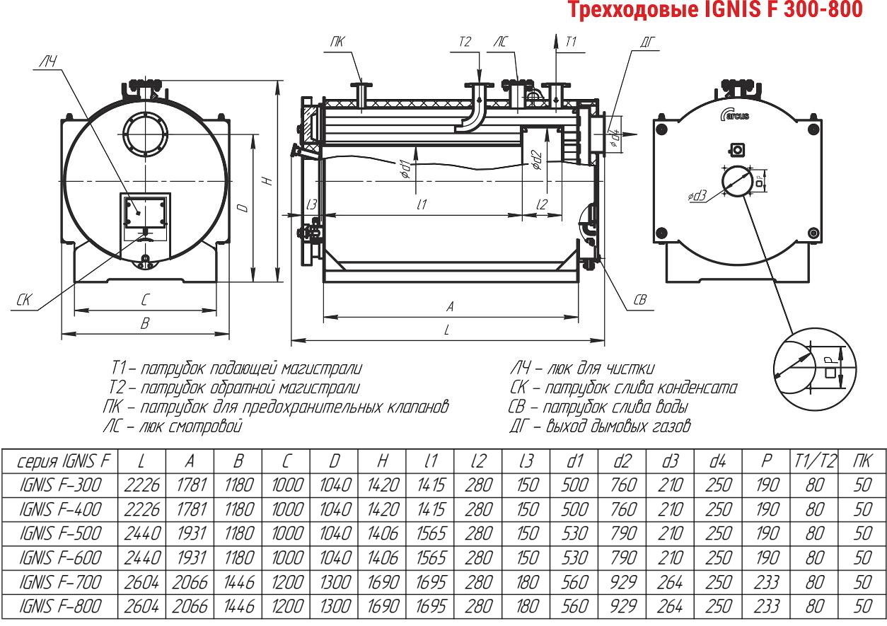 Трехходовой жаротрубный котел IGNIS F от 0,3 до 0,8 МВт (КВа-ГМ)