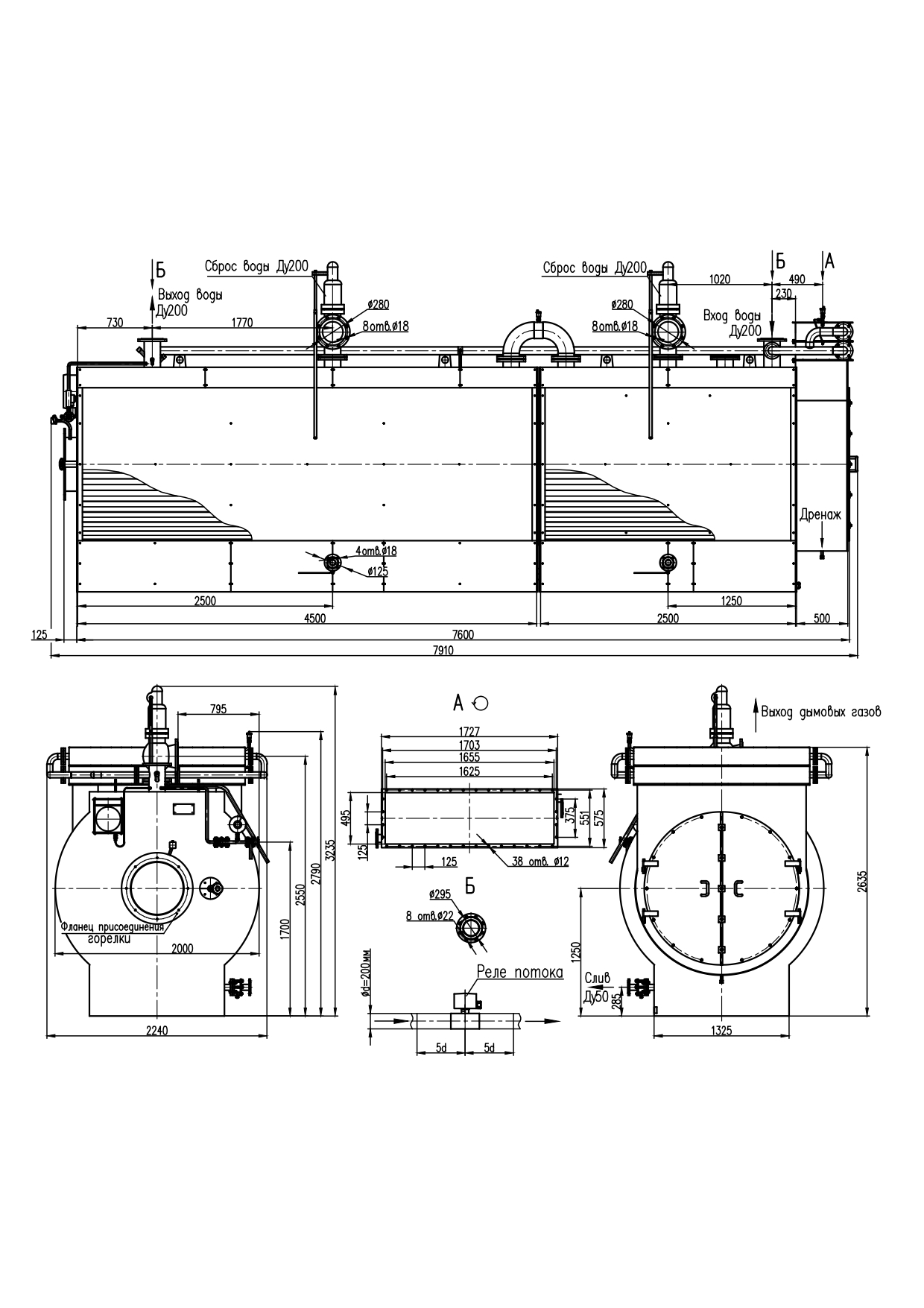 Габаритные и присоединительные размеры котла КВ-10,0