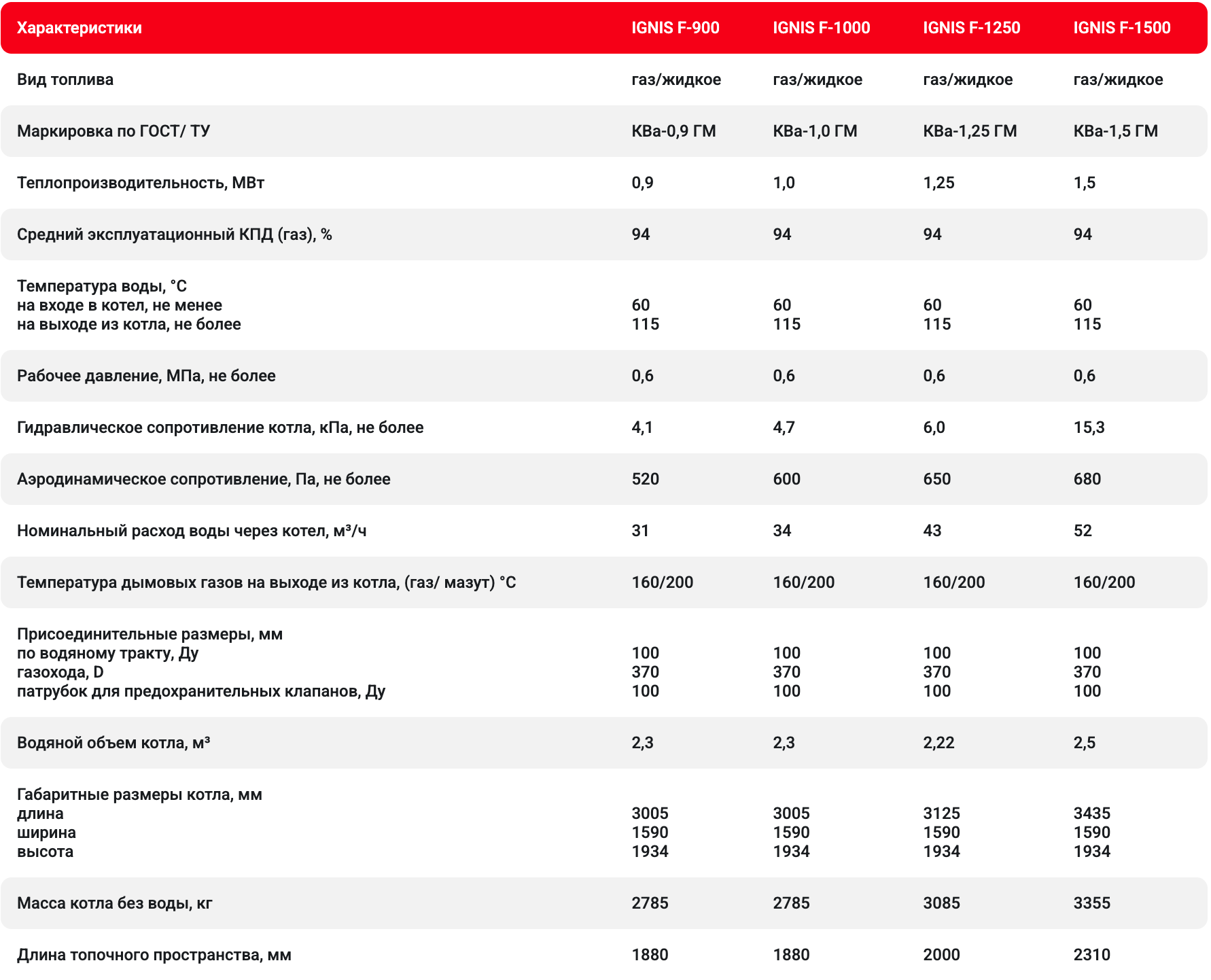 Вид топлива: природный газ ГОСТ 5542, дизельное топливо ГОСТ 305, мазут ГОСТ 10 585.