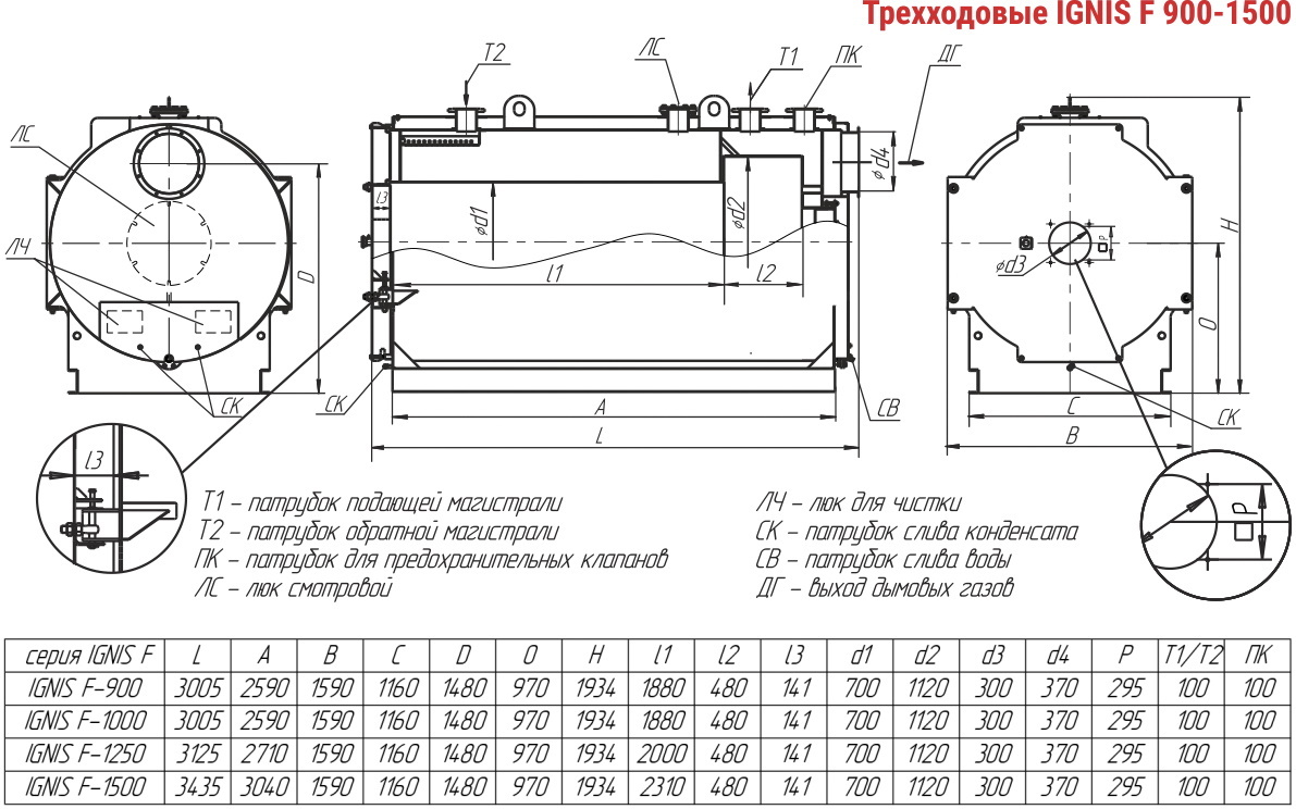 Трехходовой жаротрубный котел IGNIS F от 0,9 до 1,5 МВт (КВа-ГМ)