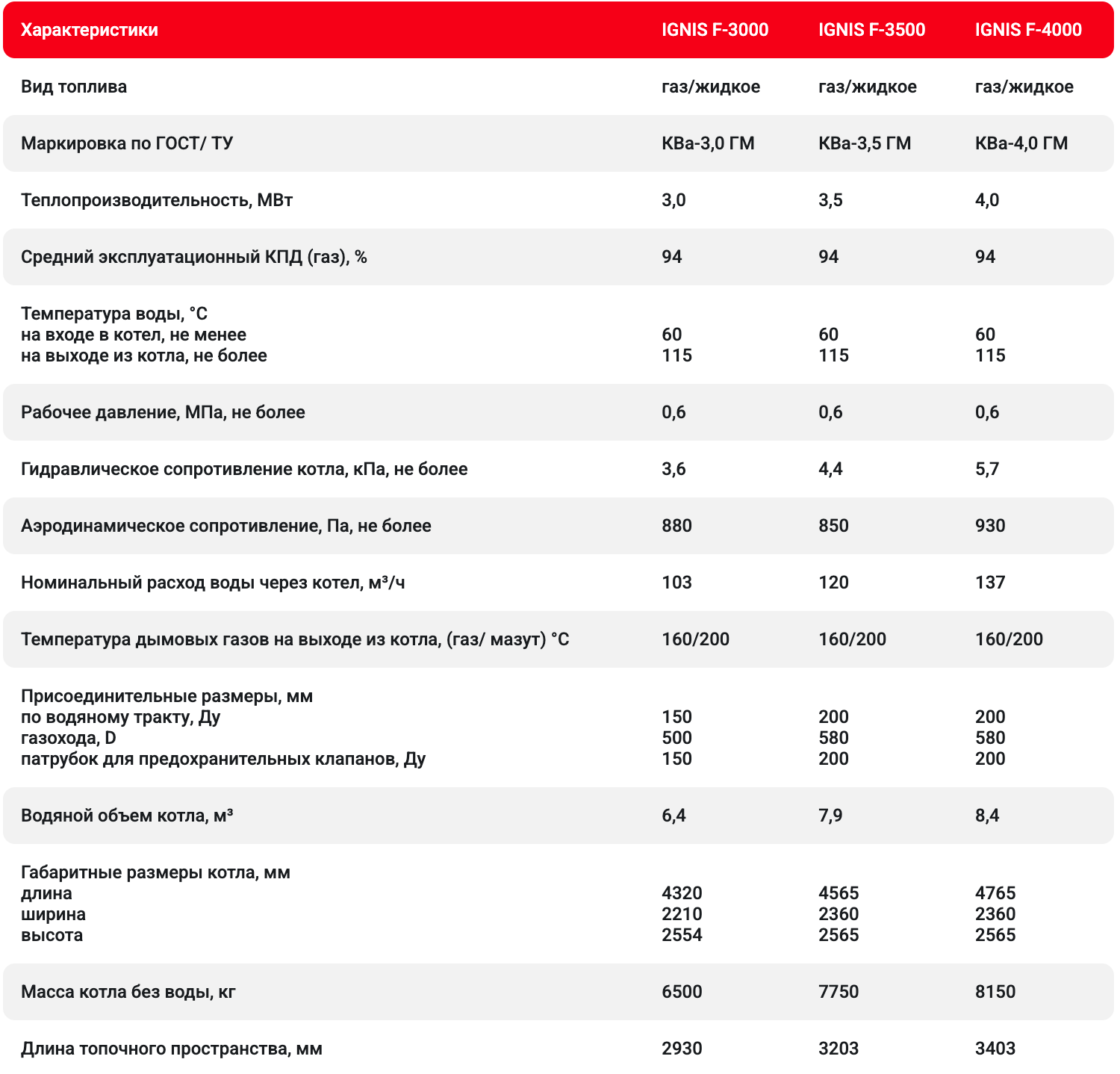 Вид топлива: природный газ ГОСТ 5542, дизельное топливо ГОСТ 305, мазут ГОСТ 10 585.