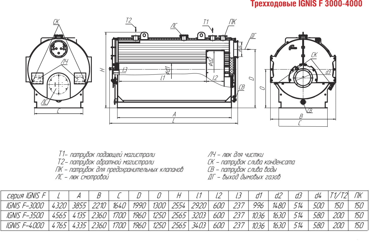 Трехходовой жаротрубный котел IGNIS F от 3,0 до 4,0 МВт (КВа-ГМ)