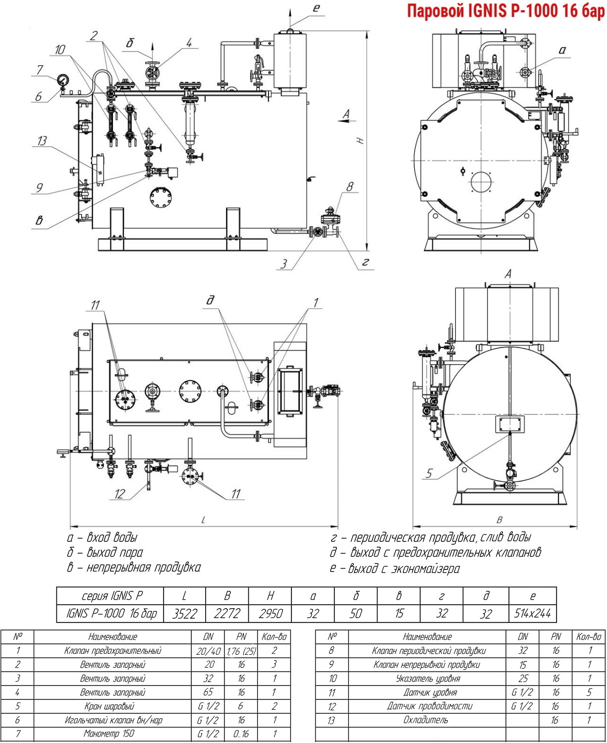 Назначение: выработка насыщенного водяного пара.