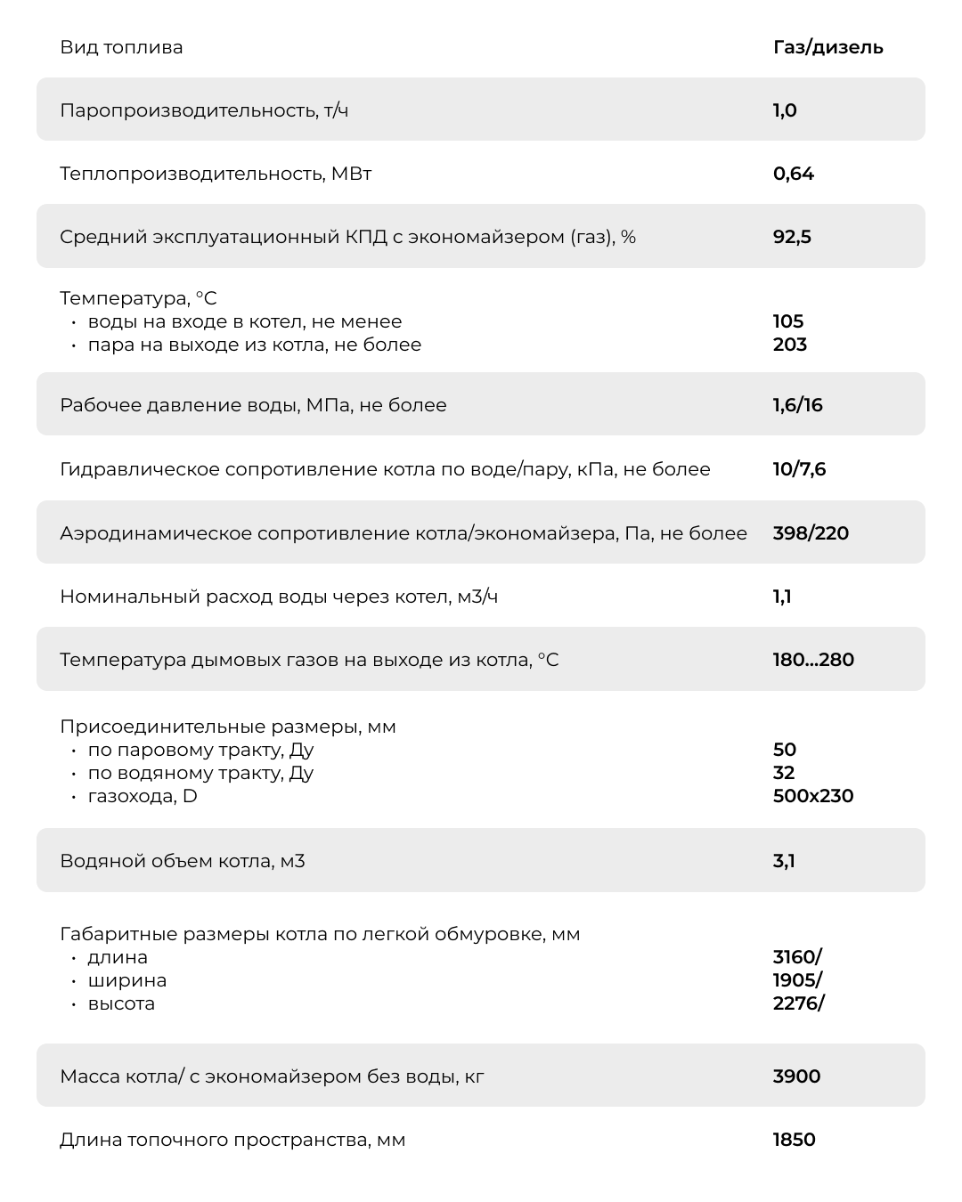 Вид топлива: природный газ ГОСТ 5542, дизельное топливо ГОСТ 305.
