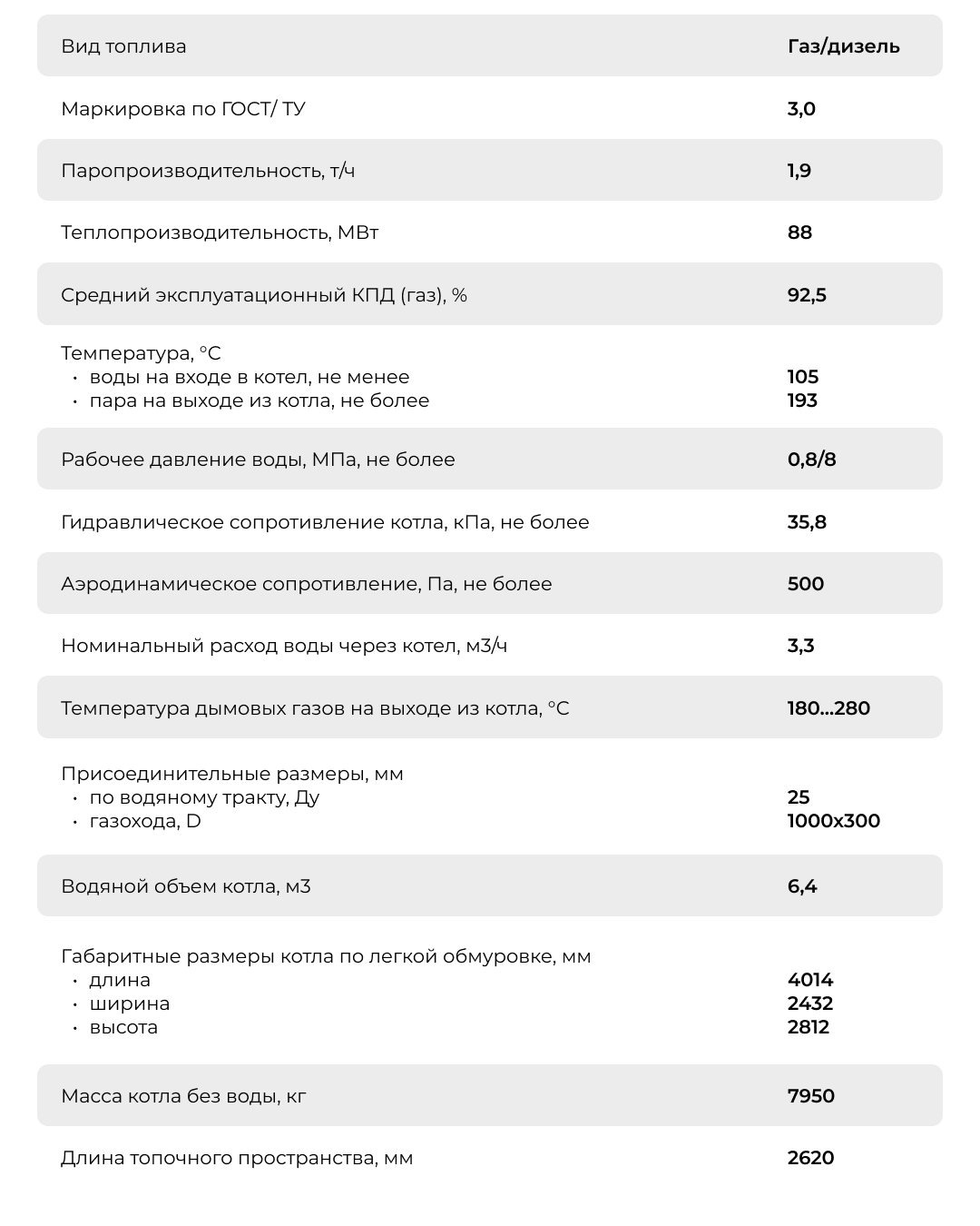 Вид топлива: природный газ ГОСТ 5542, дизельное топливо ГОСТ 305.