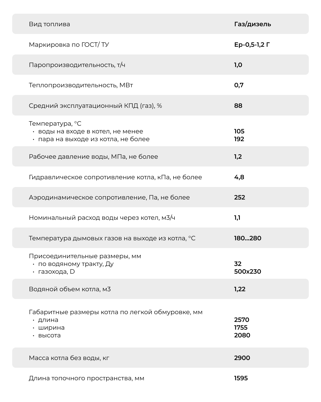 Вид топлива: природный газ ГОСТ 5542, дизельное топливо ГОСТ 305.