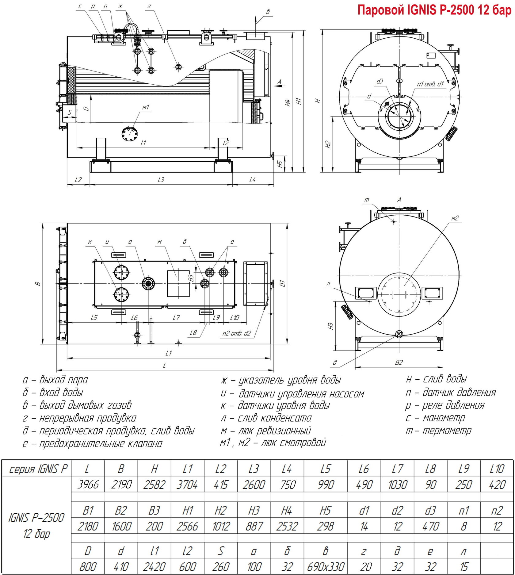 Трехходовой паровой котел P-2500 12 бар