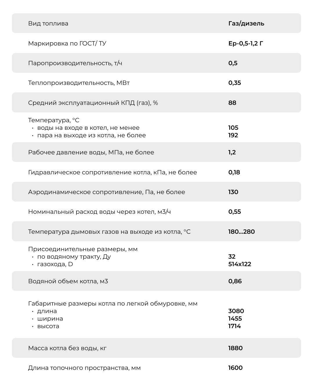 Вид топлива: природный газ ГОСТ 5542, дизельное топливо ГОСТ 305.