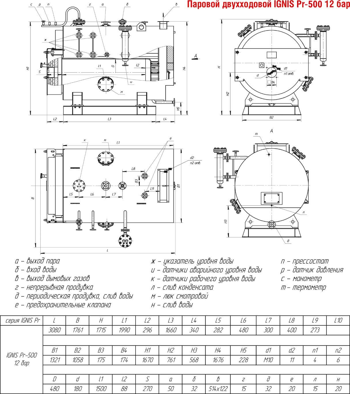 Двухходовой паровой котел Pr-500 12 бар