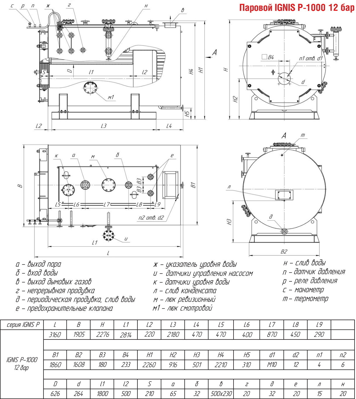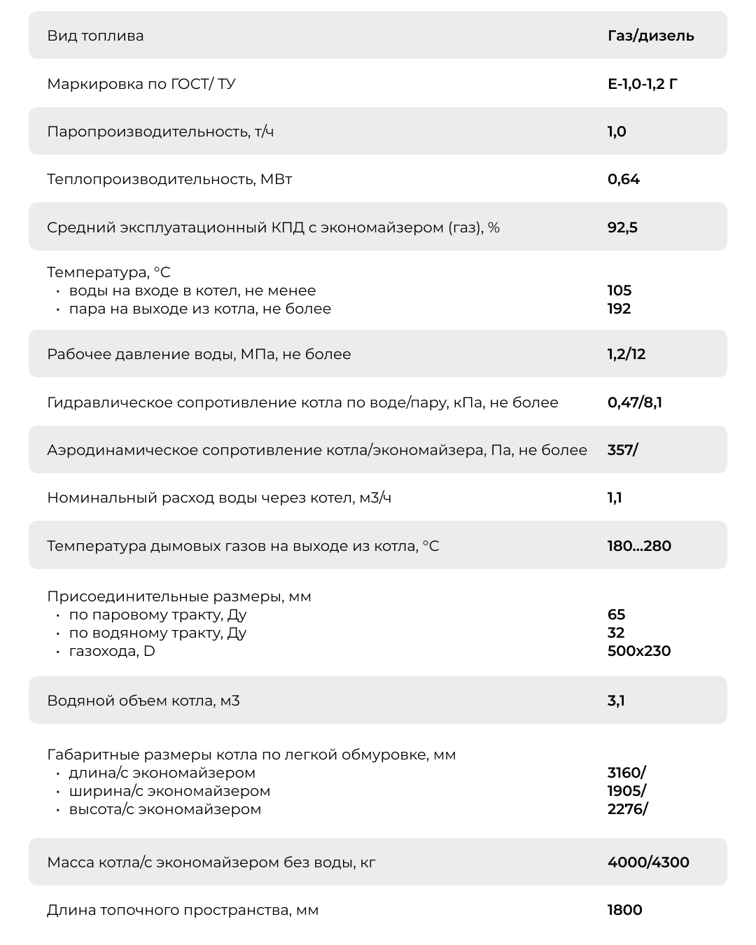 Назначение: выработка насыщенного водяного пара. Вид топлива: природный газ ГОСТ 5542, дизельное топливо ГОСТ 305. Расчетный срок службы: 20 лет на природном газе.